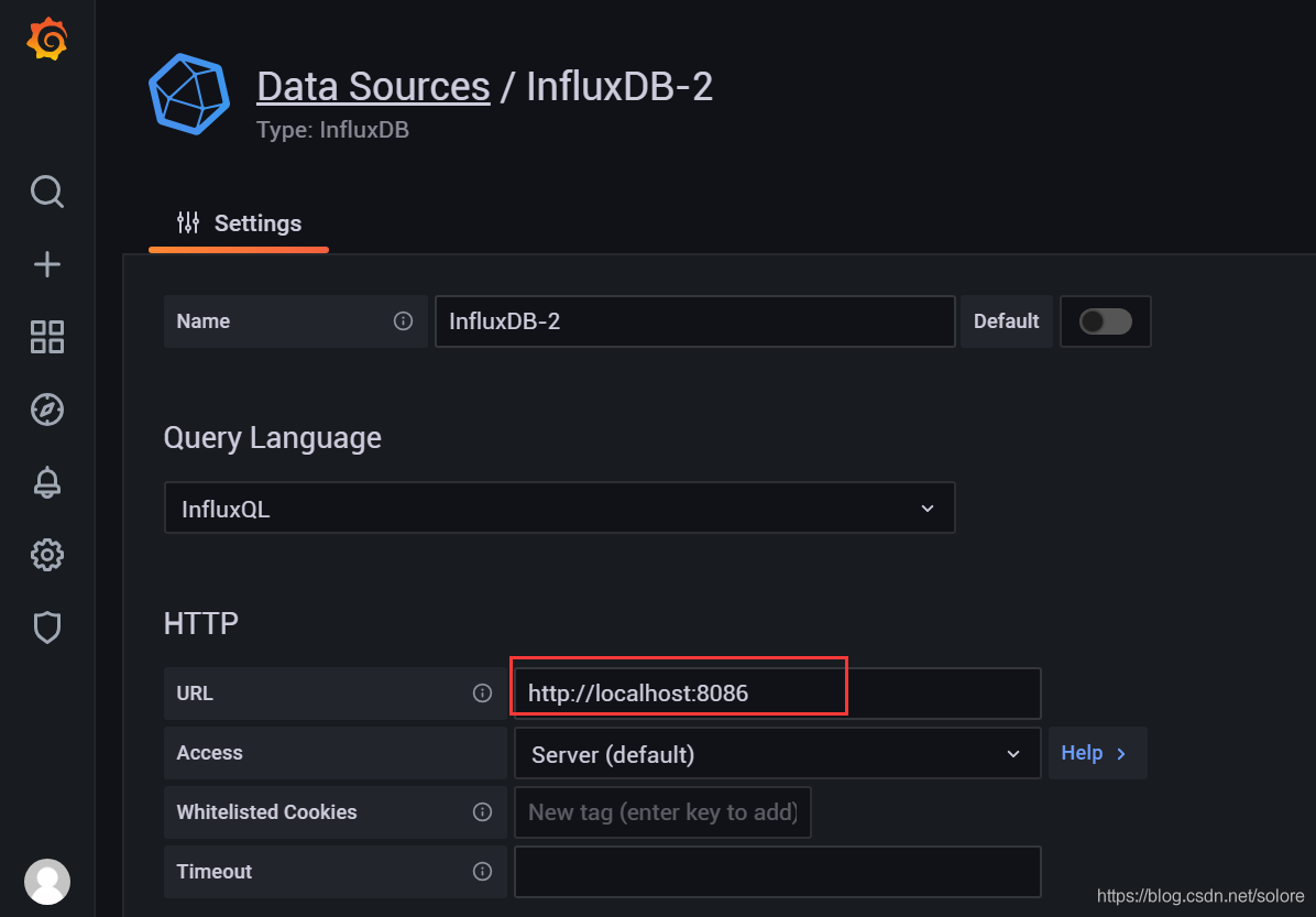 数据源设定,因为Grafana与InfluxDB安装在同一个系统之上,因此用默认的设置即可.