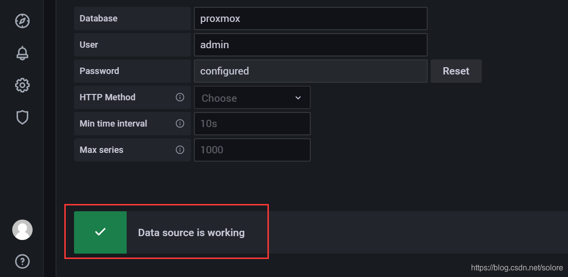 浏览器输入Grafana所在系统的IP地址加端口号3000,登录界面输入默认的用户名及密码,按提示修改登录密码。接下来,添加数据源InfluxDB,目的是把PVE的数据收集进来进行展示。