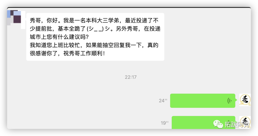 我相信不乏一些,或者说,大多数本科学弟学妹、硕士师弟师妹跟下面的这位学弟是一样的经历,那就是提前批基本没消息或者直接被刷了。