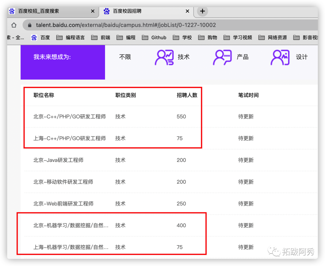 就比如去年我在投递简历的时候发现,同样都是C++/PHP开发工程师,百度在北京招 150 个,上海呢?