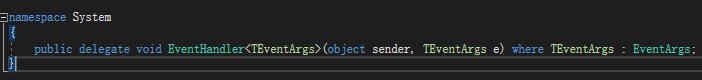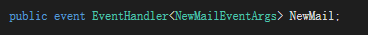 其中,NewMail是事件名称。事件成员的类型时EventHandler<NewMailEventArgs>,这意味着“事件通知”的所有接收者都必须提供一个原型和EventHandler<NewMailEventArgs>委托类型匹配的回调方法。
