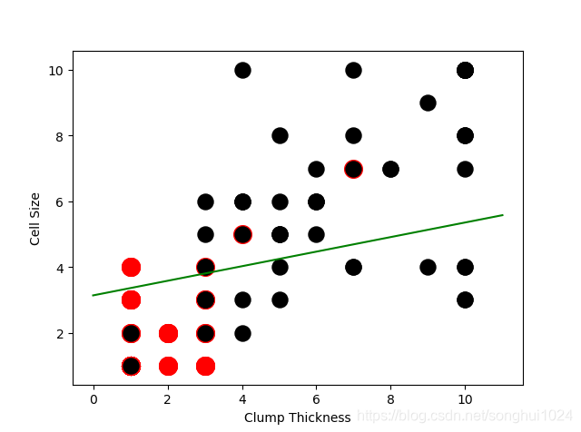 df_test_positive = df_test.loc[df_test['Type'] == 1][['Clump Thickness','Cell Size']]