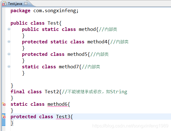protected使用对象:变量、方法 注意:不能修饰类(外部类)