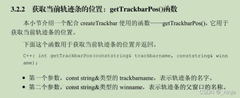 cout << "bar pos = " << getTrackbarPos(TrackbarName, WINDOW_NAME);