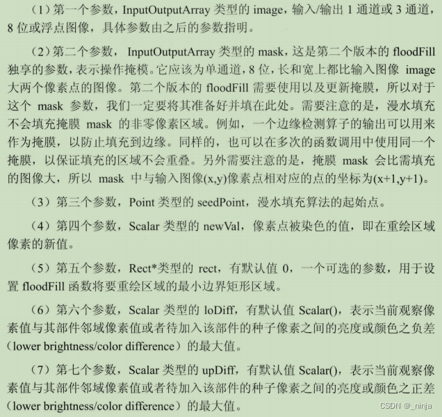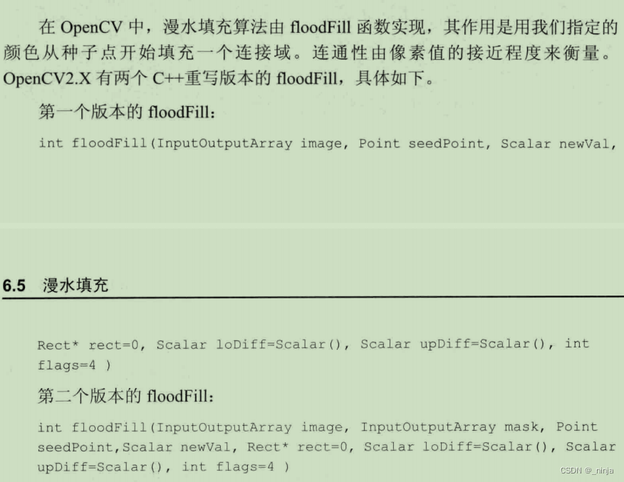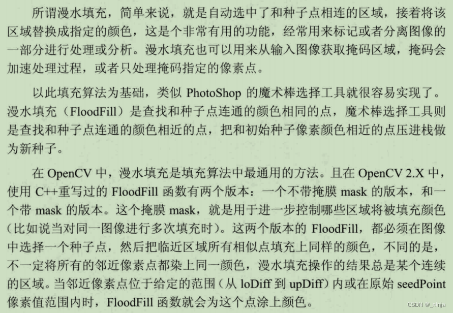 floodFill(src, Point(50, 50), Scalar(155, 255, 55), &(temp), Scalar(5, 5, 5), Scalar(10, 10, 10));