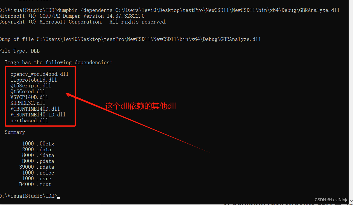 博客介绍了在windows系统下,通过进入vs的cmd窗口,使用dumpbin /dependents 文件名(带路径)命令,可查看exe或dll的依赖项,并给出了查询GBRAnalyze.dll依赖项的示例。