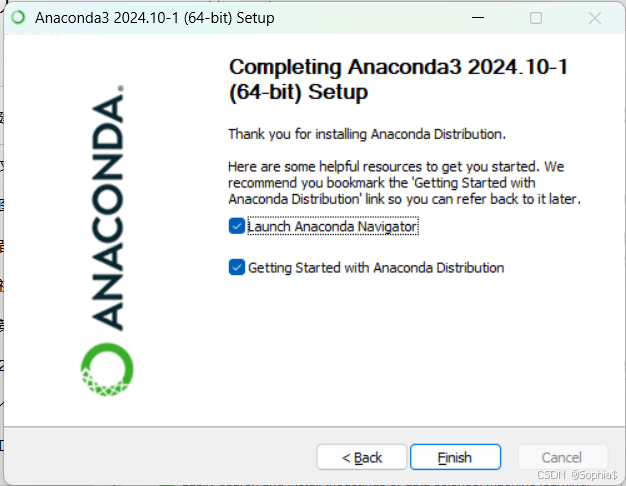 到这里点击完Finish就安装完成Anaconda了。(如果弹出其他菜单,关闭即可)