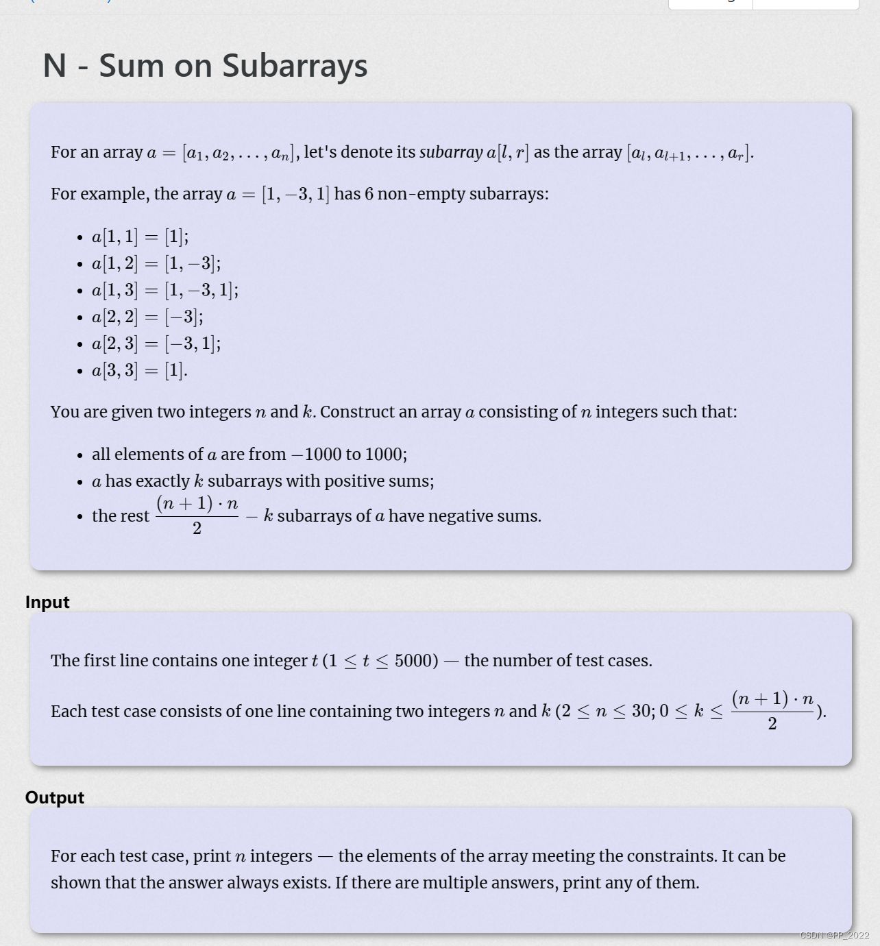 N - Sum on Subarrays