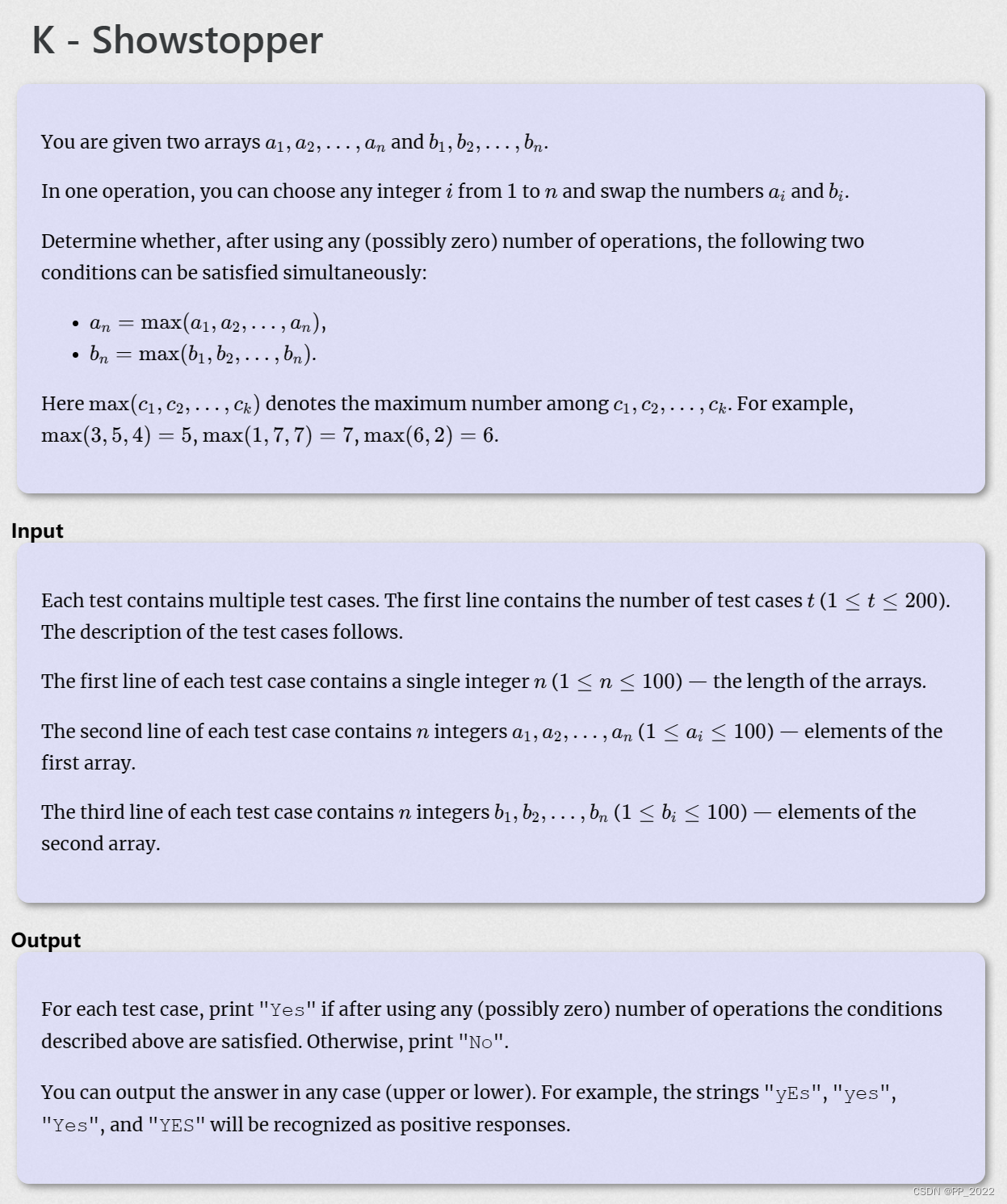 - (1 <= i <= n)取一个 i,将数组中 a[i] 与 b[i] 调换