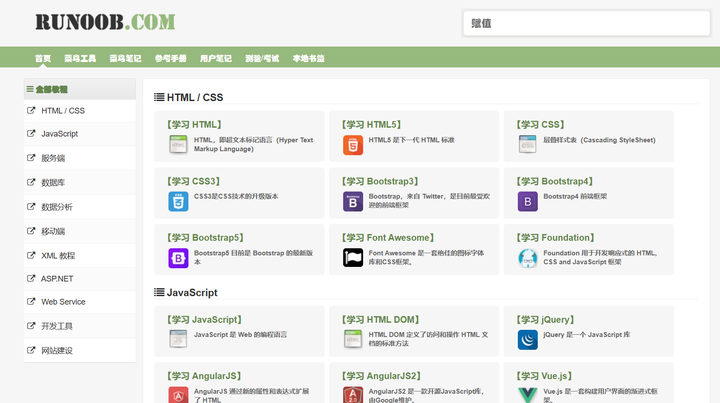 主要是教程性质的网站,主要是新手学习参考以及相关知识的内容参考