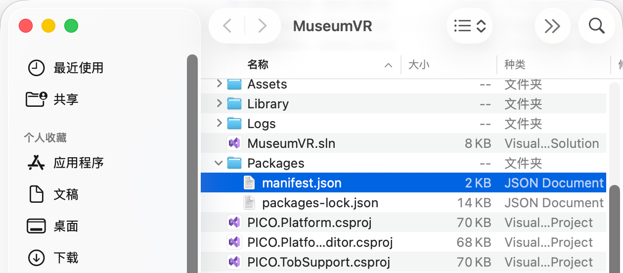 如果已经安装了某个 Package,当需要进行版本升级或降级时,除了在编辑器内操作,还可以通过直接修改项目清单文件 (manifest.json) 的方式来实现。这种方法适合批量管理依赖或快速复制他人的环境配置。