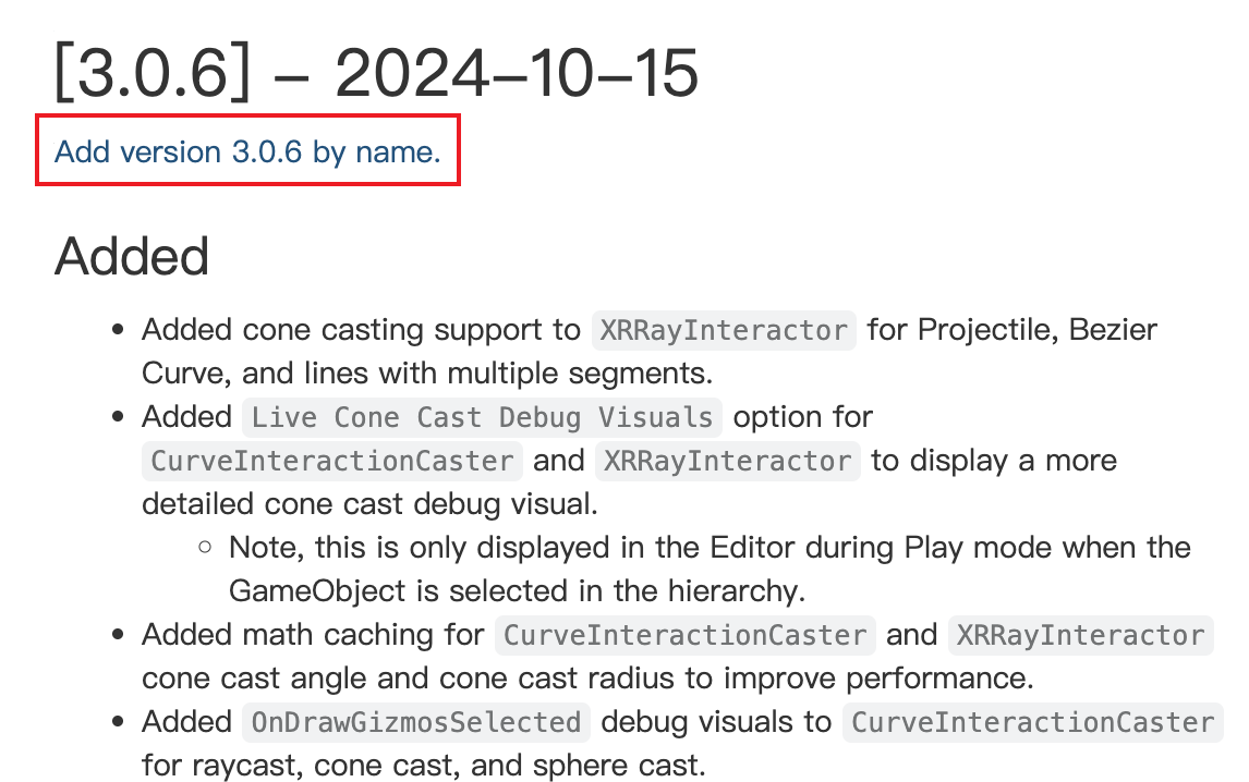 3. 在对应版本的更新说明顶部,找到类似 "Add version x.x.x by name" 的链接按钮,如下图所示(以3.0.6为例):