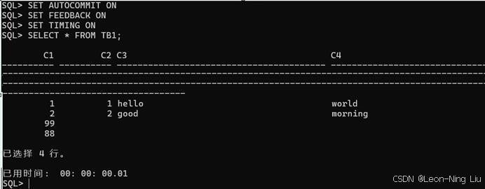 - SET FEEDBACK ON/OFF/n:控制是否显示 "已选择 X 行"。