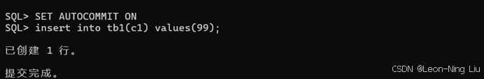 - SET AUTOCOMMIT ON/OFF:控制 DML 语句(INSERT/UPDATE/DELETE)是否自动提交。