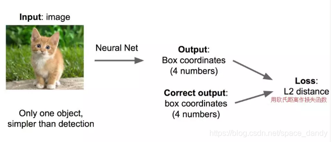 对于一个简单的图像识别任务(识别图中的物体并使用方框圈出它的位置)