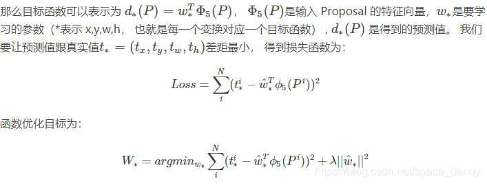 候选区域/窗口一般使用四维向量(x,y,w,h)表示,分别表示窗口中心点的坐标和宽高,目标是寻找一种关系使得输入的原始窗口与真实窗口接近的回归窗口。实现的思路是平移+尺度收缩,也就是学习原始窗口的dx、dy、dw和dh。在RCNN等算法中,输入为窗口的卷积特征,输出为需要进行的平移变换和尺度缩放。