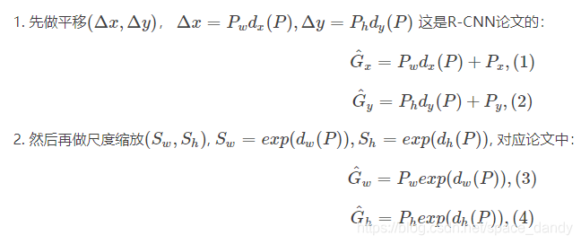 dx,dy,dw和dh得到的为预测值G^,也就是真正需要的平移量(tx,ty)和尺度所放量(tw,th)。