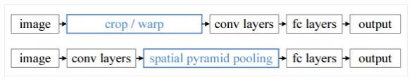 CNN一般都含有卷积层和全连接层,其中卷积层的输入图像不需要固定尺寸,但全连接层的输入需要固定大小,因此全连接面对不同尺寸的输入数据时需要对输入数据进行crop或resize,从而统一图片的尺寸大小。crop和resize导致图像被拉伸变形或者裁剪至残缺,限制了识别的精确度。