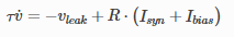 其中tau为膜时间常数,定义了神经元对先前状态和输入的依赖程度;该模型描述了具有泄露动力学的系统,膜电位v随着时间推移缓慢泄露为0,也是LIF(Leaky Integrate and Fire)模型的由来。公式中Isyn=Wx,是所有输入突触的加权和,Ibias为输入偏置。R表示常数电阻,用于膜电位和电流电位之间的匹配。