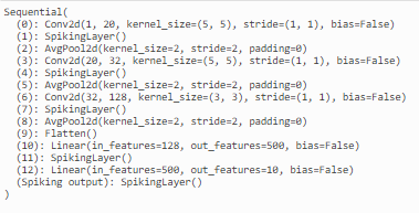 - 下面介绍如何将CNN结构转换为SCNN结构,sinabs中的from_model函数可以将CNN转换为SCNN