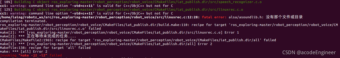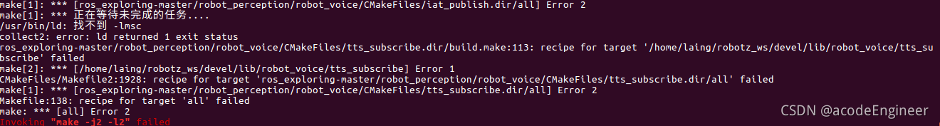 1、根据《ROS机器人开发实践》书中例子,将robot_mrobot包中的5个功能包拷贝到新建src目录下,编译后存在问题。