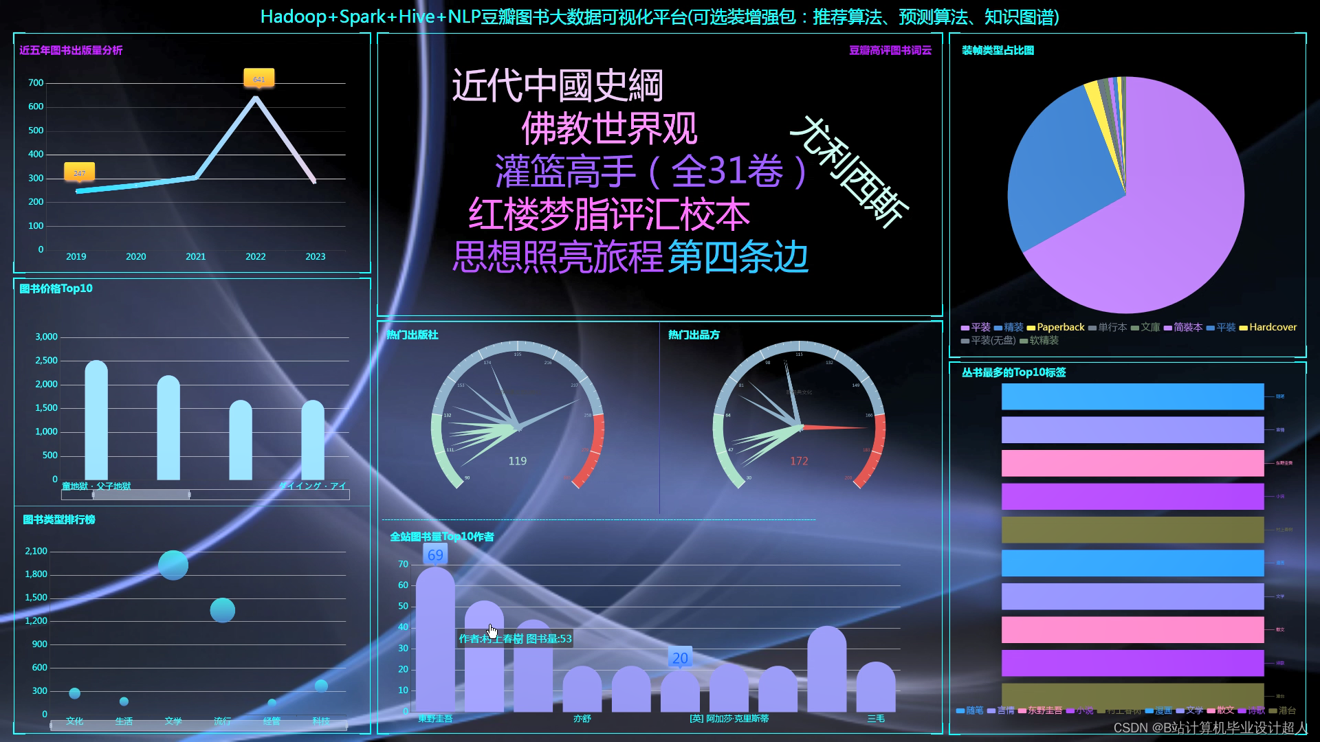 计算机毕业设计吊打导师hadoop+spark+hive豆瓣图书数据分析可视化大屏 豆瓣图书爬虫 图书推荐系统 知识图谱 图书大数据 大数据毕业设计 机器学习