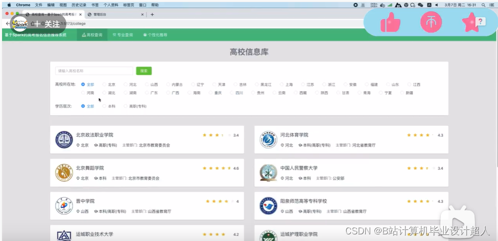 计算机毕业设计吊炸天hadoop+spark+hive高考数据分析可视化大屏 高考爬虫 高考志愿填报推荐推荐系统 高考分数线预测 数据仓库 大数据毕业设计