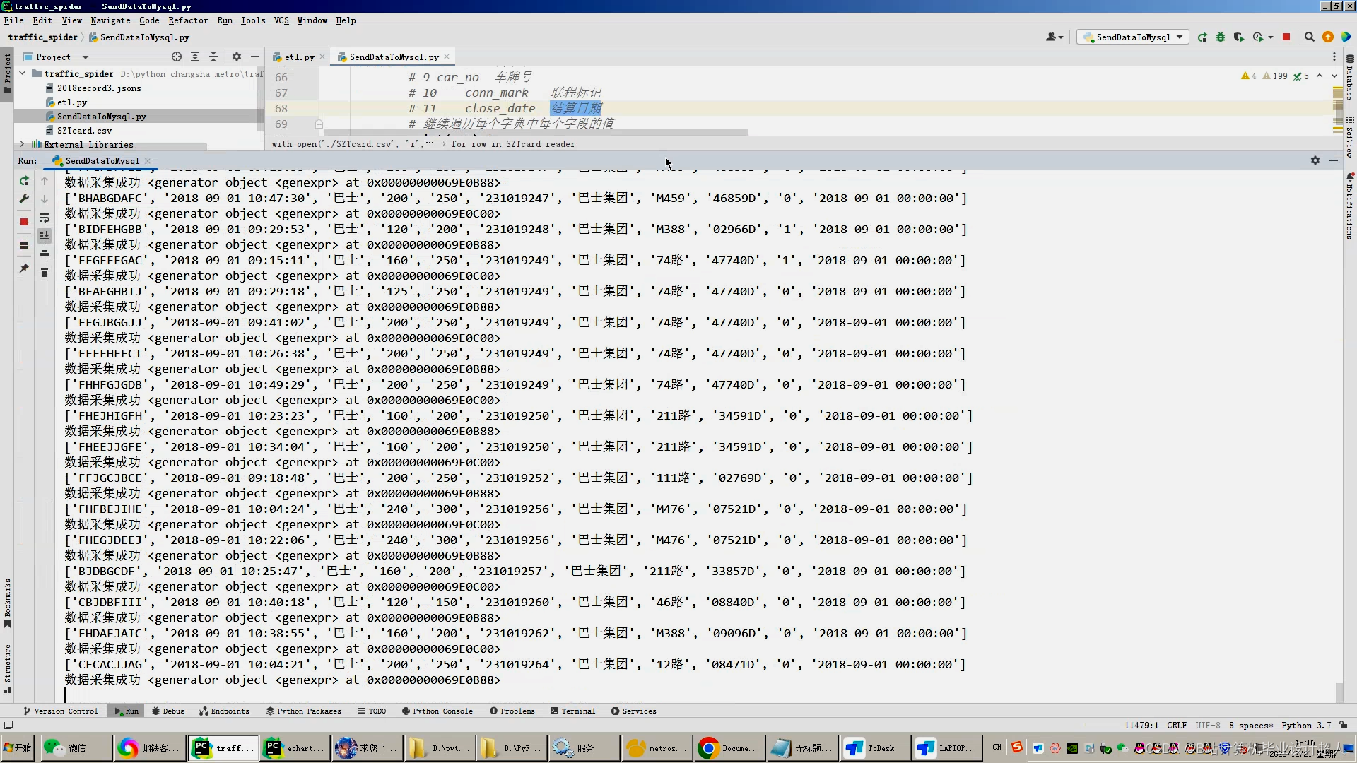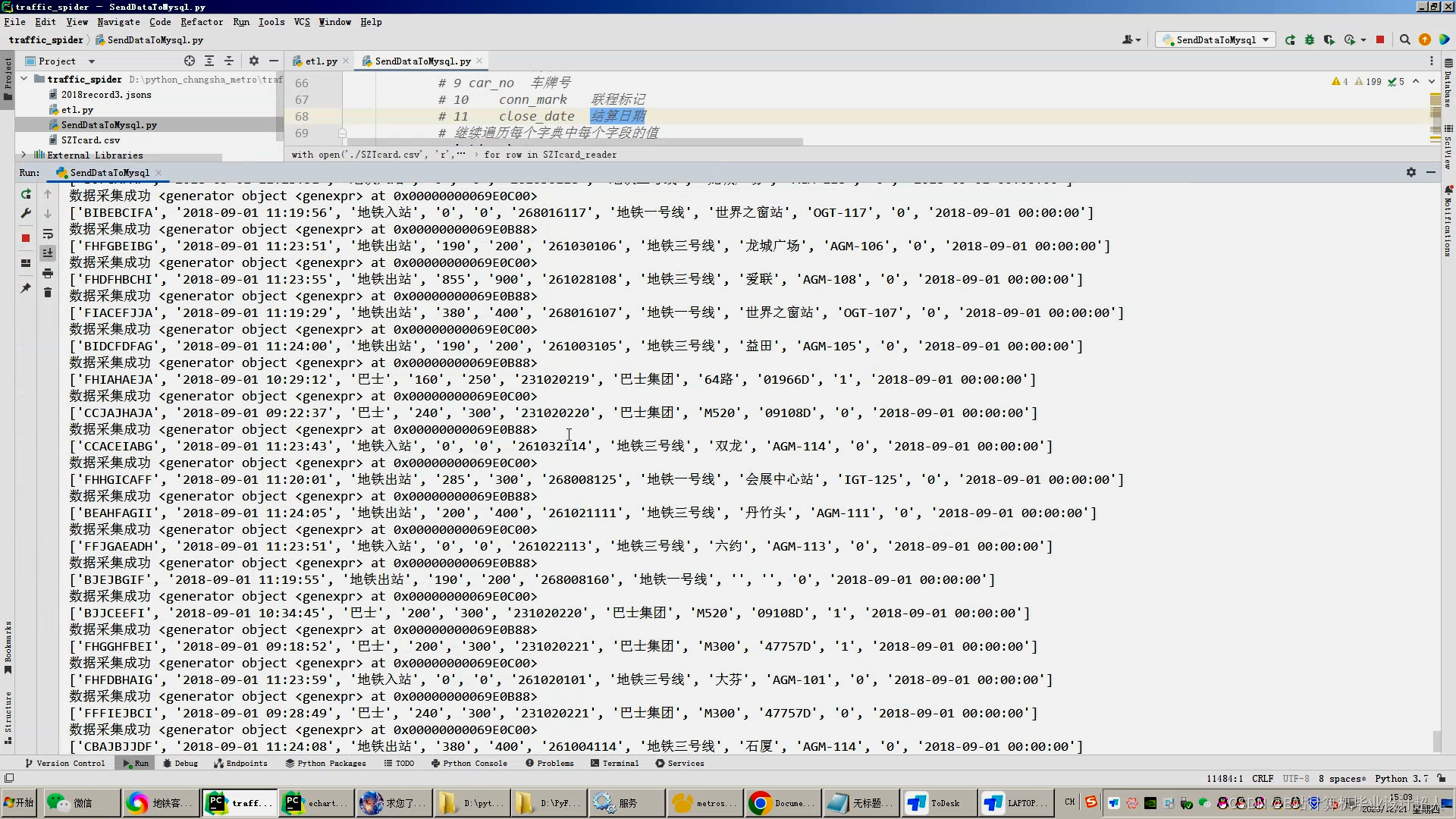 1.采集任意城市地铁数据约100万条存入.csv和mysql,清洗后的.csv上传mysql;