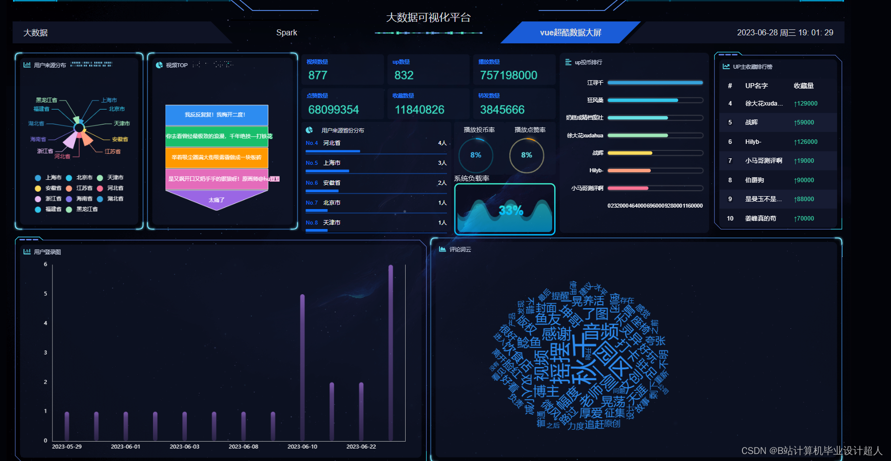 (一)Selenium自动化Python爬虫工具采集漫画视频等约10万条存入.csv文件作为数据集; (二)使用pandas+numpy或MapReduce对数据进行数据清洗,生成最终的.csv文件并上传到hdfs; (三)使用hive数仓技术建表建库,导入.csv数据集; (四)离线分析采用hive_sql完成,实时分析利用Spark之Scala完成; (五)统计指标使用sqoop导入mysql数据库; (六)使用Flask+echarts进行可视化大屏开发; (七)使用机器学习、深度学习的算法进行个性化漫画视频推荐; (八)使用卷积神经网络KNN、CNN实现漫画视频流量预测; (九)搭建springboot+vue.js前后端分离web系统进行个性化推荐界面、漫画视频流量预测界面、知识图谱等实现; | ||||||||||||||||