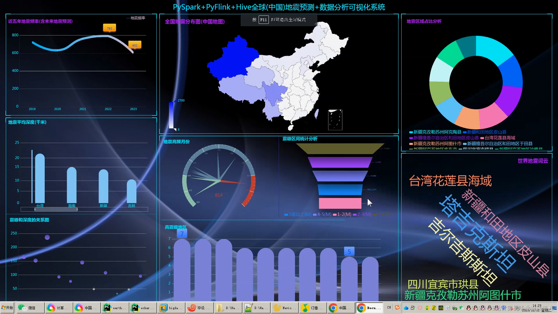 国内外研究或应用现状:在地震数据分析与可视化方面,国内外已经有很多研究工作。例如,利用地震震级和发生时间的数据,进行地震预测和预防的研究;利用地震数据的空间分布和时间序列分析,研究地震活动的特征和规律等。此外,一些商业软件和开源软件也被广泛应用于地震数据的分析和可视化。