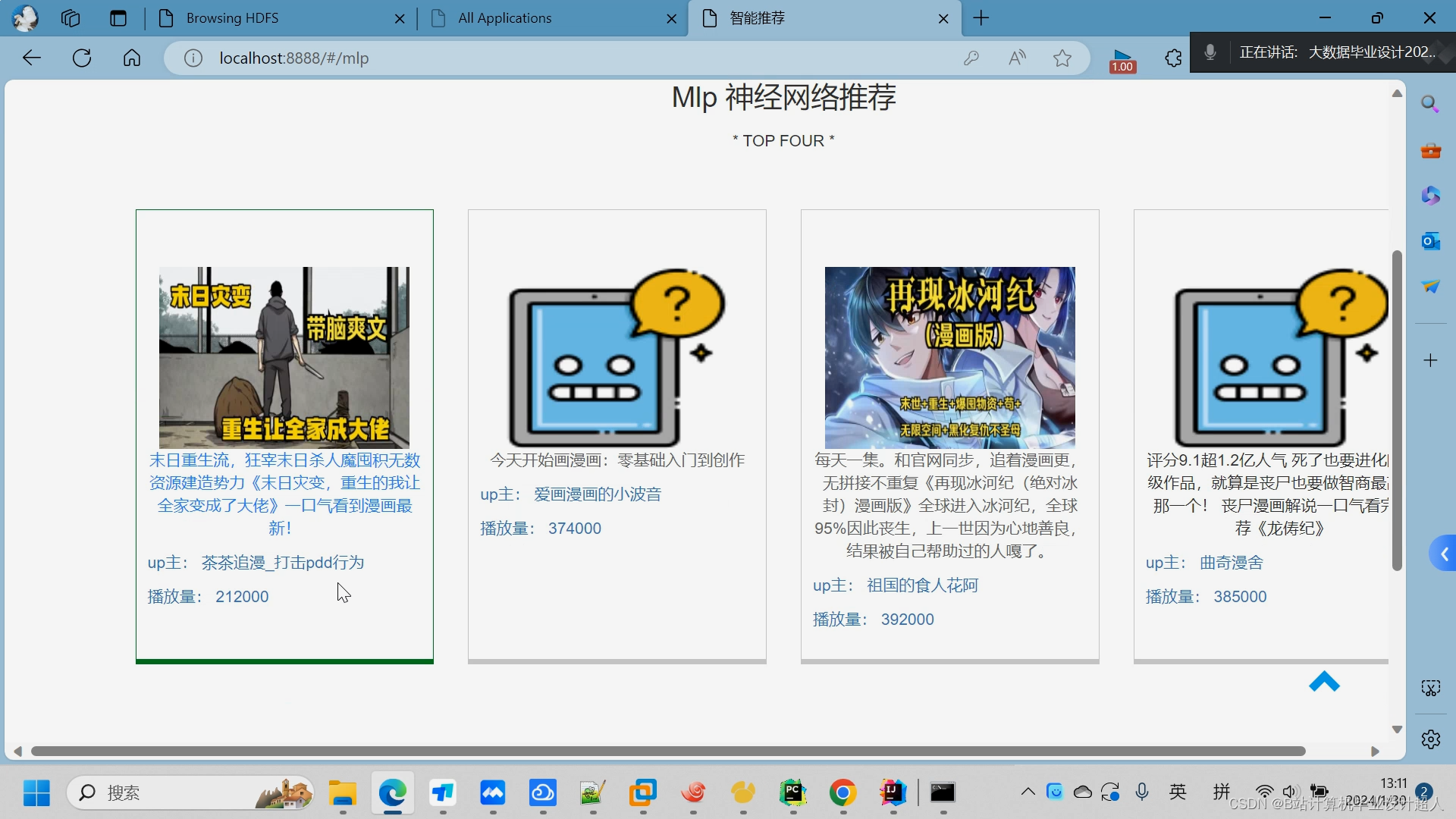 基于hadoop+spark的动漫视频推荐系统 | ||||