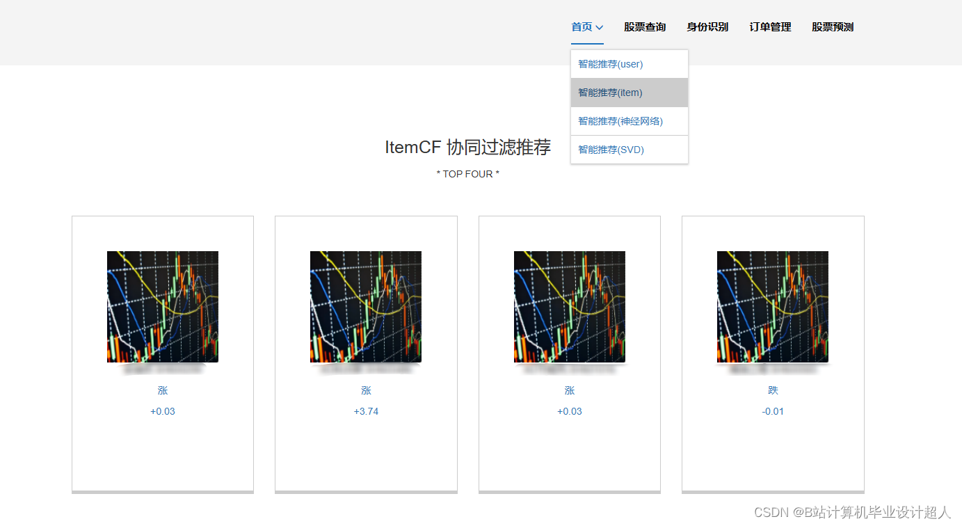 主要内容: 1、数据采集:收集股票市场的历史数据和实时数据,包括股票价格、成交量、财务指标等。 2、门户系统:首页股票信息展示;股票推荐(根据协同过滤基于用户、物品、SVD神经网络、MLP模型);股票K线预测(CNN卷积神经预测 );股票信息详情(股票代码,涨跌幅度,成交量,成交额,换手率,股票市值); 支付宝购买股票;订单管理;股票信息评论(lstm情感分析模型)。 3、后台管理系统:个人信息管理;系统管理;用户管理;股票信息管理;评论信息管理;知识图谱。 | |||||
