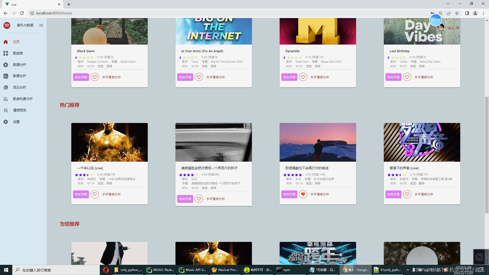 - 爬虫技术方案:使用网易云代理站点完成数据爬取,包括音乐信息、评论、歌词等,主要运用Python爬虫技术,包括selenium、requests等;