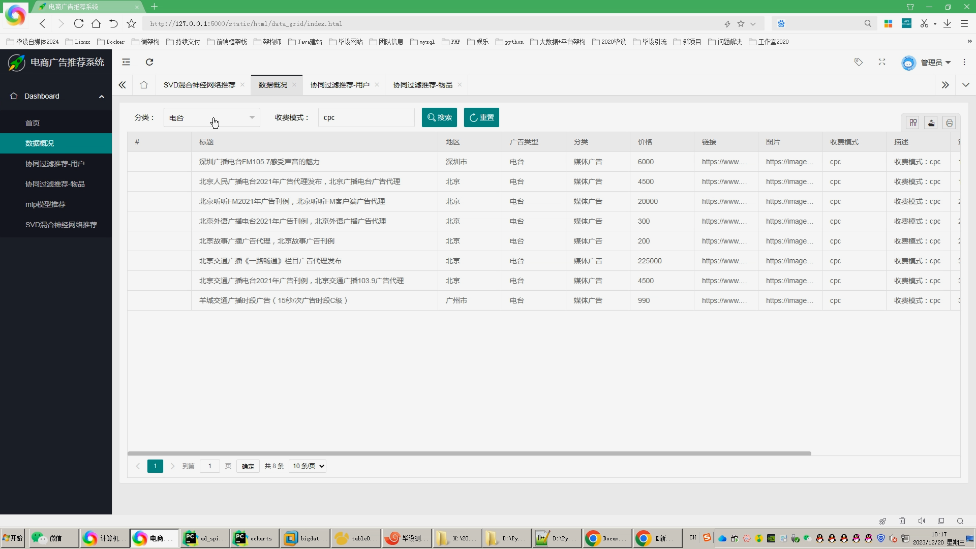 广告数仓项目以广告主投放到媒体平台为业务基础,收集管理平台数据及媒体平台发送的广告曝光点击次数之后,进行数据分析与统计,最终实现可视化报表展示。