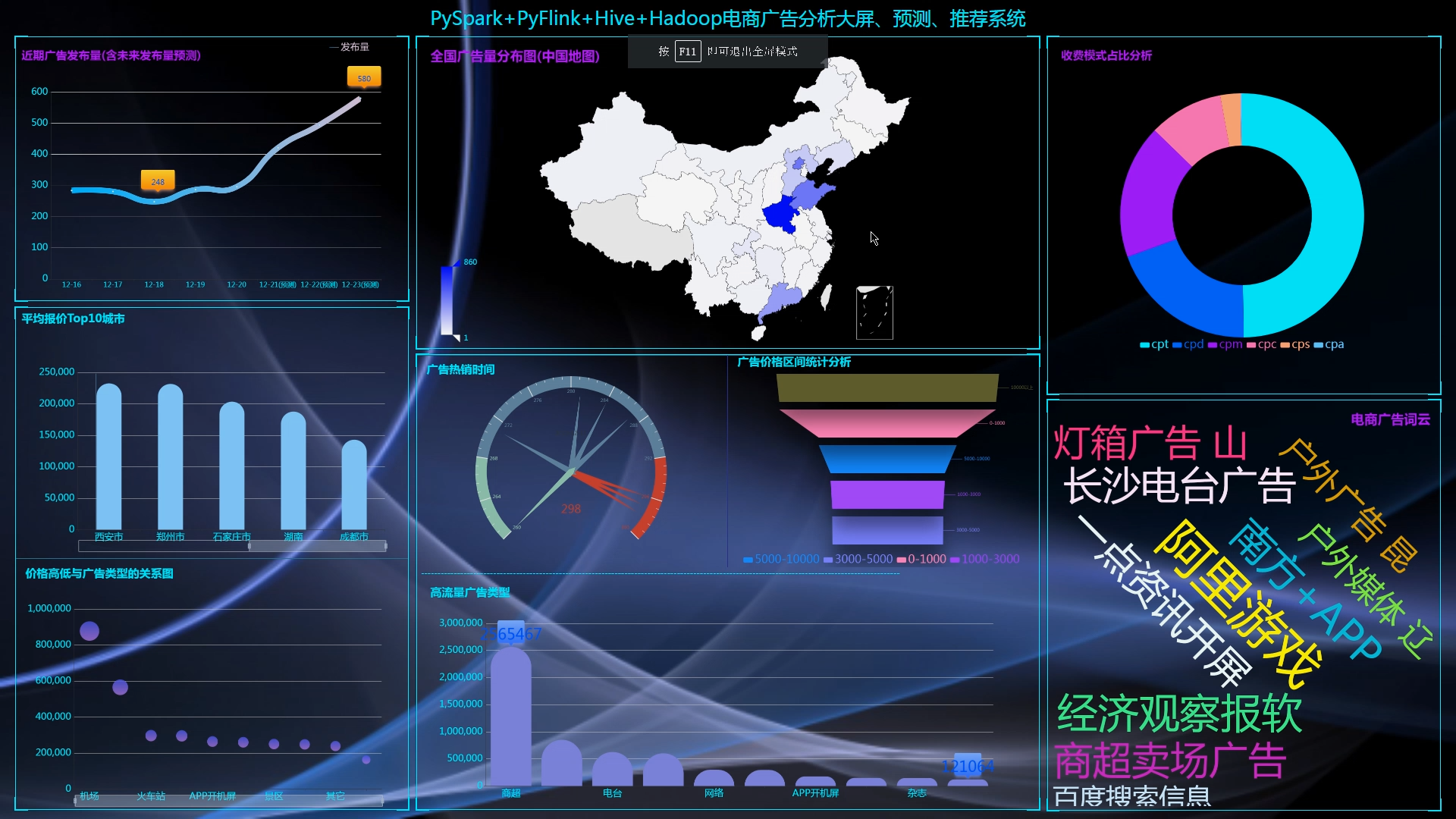 项目共分六大部分:广告业务详情介绍、数仓建模原理介绍、数仓集群部署和环境搭建、数仓数据分析及ETL完整流程、DolphinScheduler全流程调度、FineBI可视化大屏展示,是一套完整的数仓项目,学习者部署本地虚拟机即可实现全部项目流程。
