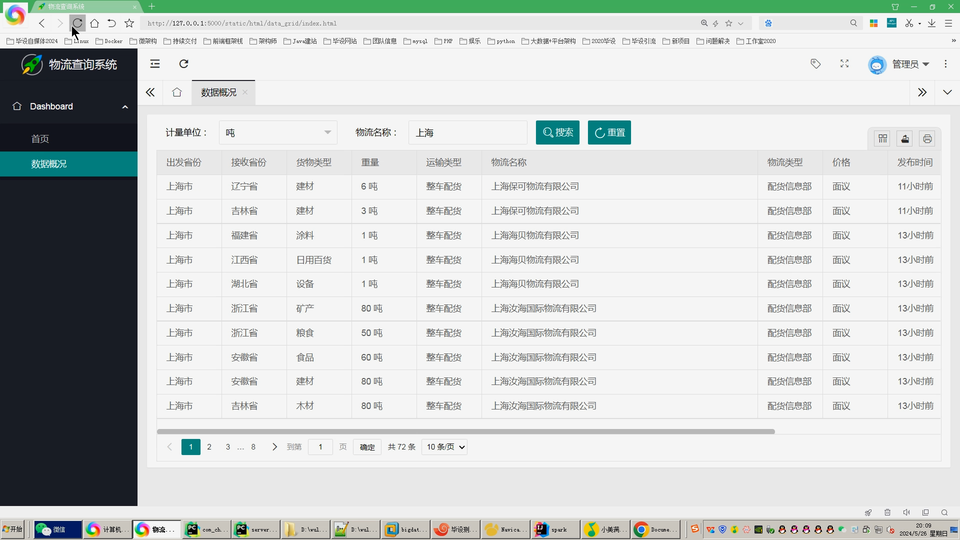 6.使用Flask+echarts进行可视化大屏实现、数据查询表格实现、含预测算法;