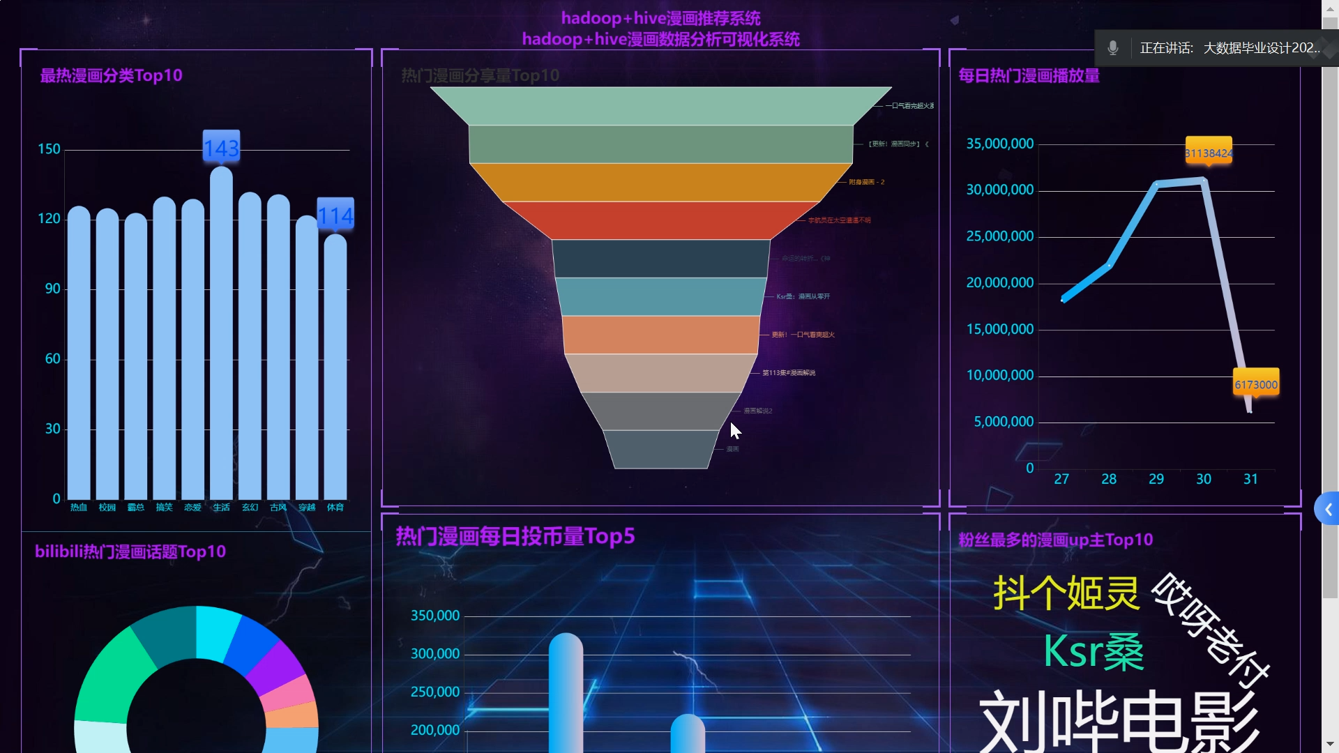 | 题 目 | 基于hadoop+spark的动漫视频推荐系统 | ||||