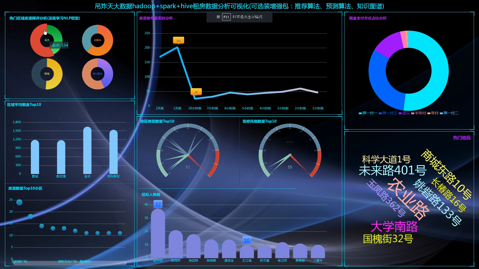模块一:租客用户模块 功能点1:用户注册和登录 功能点2:查看在租房屋的具体房源信息(时间,所在位置,大小等) 功能点3:向房东提出看房请求 功能点4:对已租房屋向房东发起退租请求 功能点5:查看租房历史,并可对其进行增删改查 模块二:房东用户模块 功能点1:用户注册和登录 功能点2:发布房源具体信息(包括图片、文字、视频等) 功能点3:查阅看房请求(所对应的租客信息、时间、请求的房源) 功能点4:管理看房请求(可对其接受或拒绝)和退租请求 模块三:管理员模块 功能点1:管理员注册和登录 功能点2:查看平台租客、房东权限和信息,并可对其进行管理 功能点3:查看平台的房源内容,并有权限对其进行增删改查 功能点4:发布平台公告,返回公告已确认信息 模块四:报障模块 功能点1:租客发现故障,进行报障申请 功能点2:房东查看对应租客未处理的故障 功能点3:房东收到报障申请,开始处理已报故障 功能点4:发布故障处理流程和处理结果反馈 模块五:数据导出及分析模块 功能点1:将用户数据导出为MR平台数据文件 功能点2:允许用户基于HDFS分布式平台进行数据管理 功能点3:允许用户基于Hadoop集群进行数据处理 功能点4:处理数据,得出看房请求的最大值,请求量与时间的关系 功能点5:处理并分析租客年龄信息,对比各年龄人群租房的偏好 功能点6:输出数据成为数据库文件,供数据展示平台使用 | ||||||