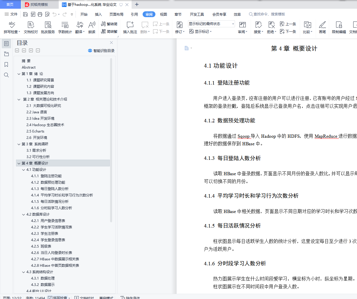 1.对“文献综述”的评语: 对教育领域数据可视化的相关背景和现状做了综述,明确了课题的研究目标和研究重点,并对研究手段进行了概述。为后面的毕业设计做好了准备。