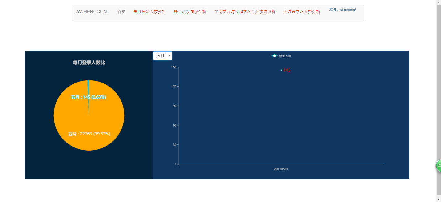 读取HBase中登录数据,页面显示不同月份的登录人数比,并可以显示每月登录人数,可以切换不同的月份。