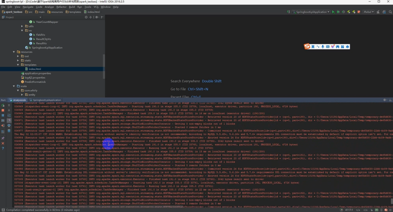 3. **数据处理与分析**:利用Spark实现用户行为数据的实时处理和分析,包括数据清洗、特征提取、模式识别等关键步骤。