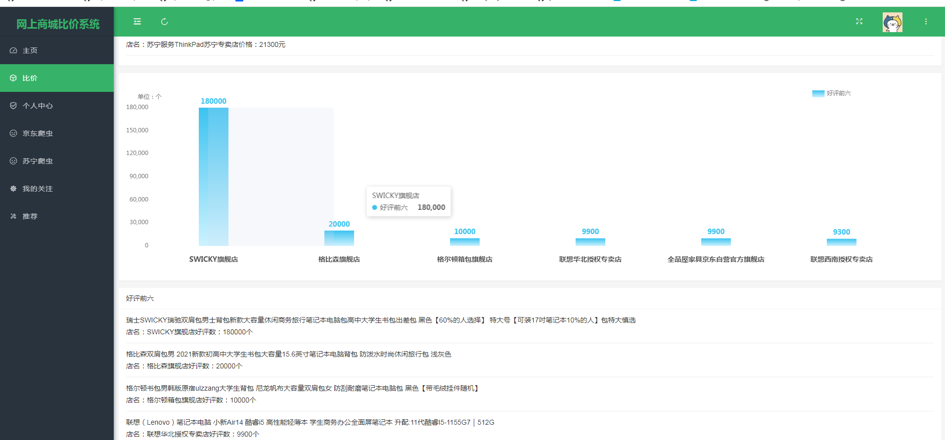 - 系统具备比价功能,能够为用户提供性价比最高的商品选择。