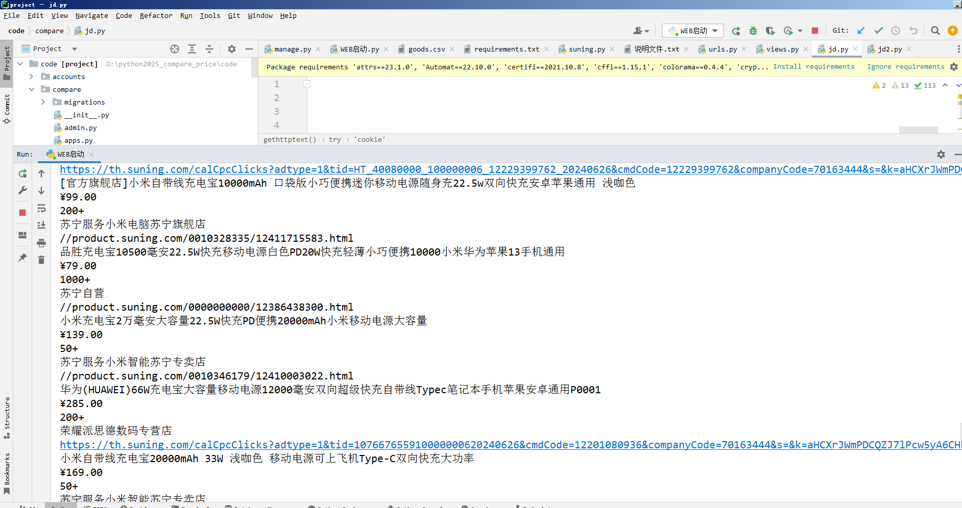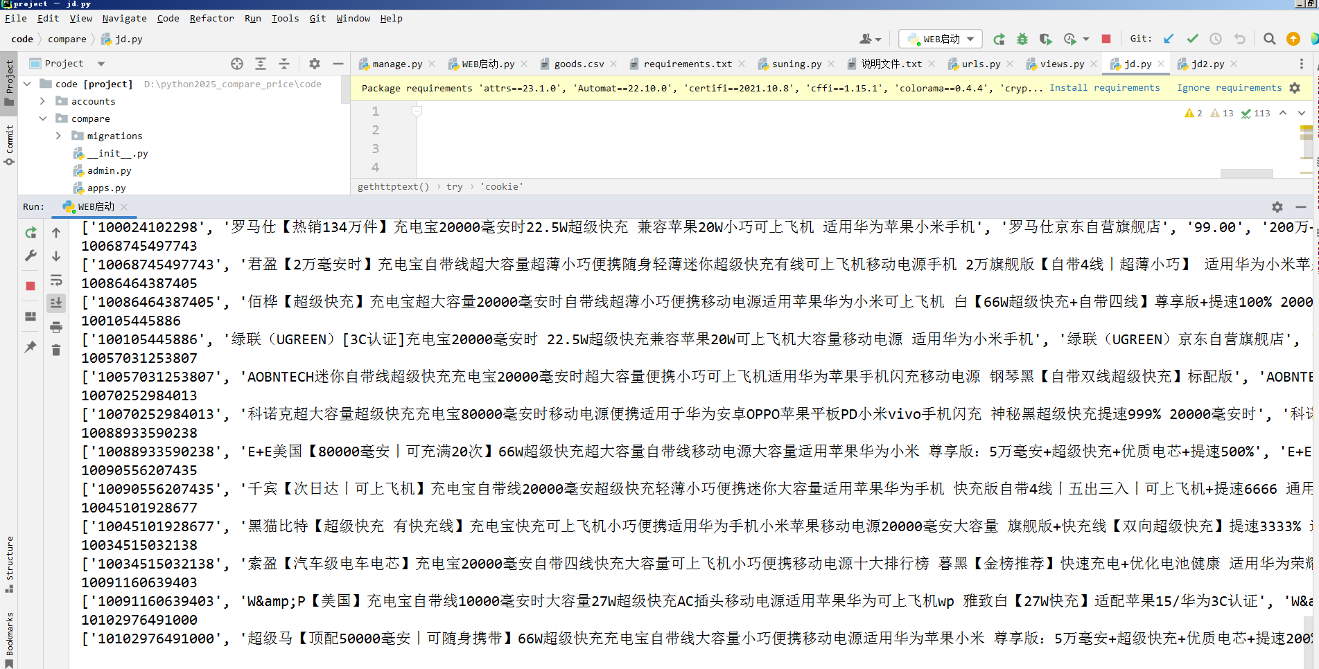随着互联网和电子商务的飞速发展,网上商城如雨后春笋般涌现,商品种类和数量急剧增加。消费者在享受购物便利的同时,也面临着如何在众多商城中快速找到最优惠价格的挑战。传统的购物方式需要消费者逐一访问各个商城,比较商品价格,这不仅耗时耗力,而且效率低下。因此,开发一个基于爬虫的Django+Vue.js商品比价系统具有重要的实际意义。
