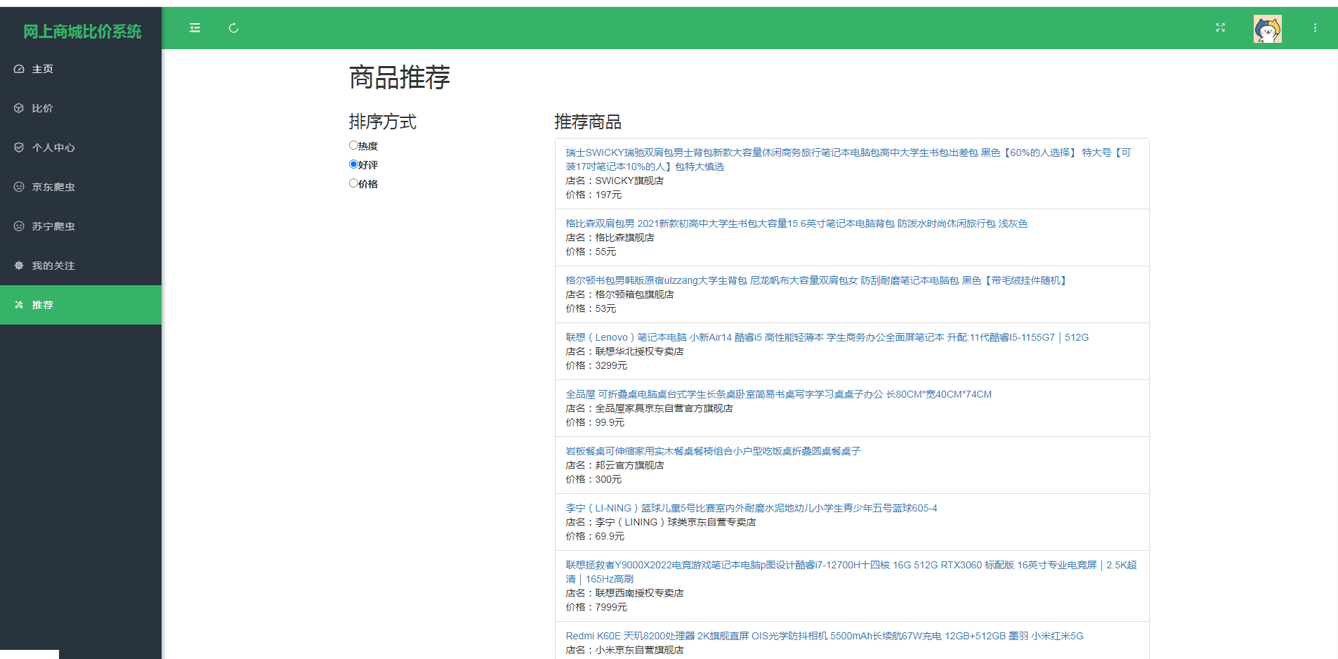 - 系统能够自动抓取各大网上商城的商品信息,并进行数据清洗和预处理。