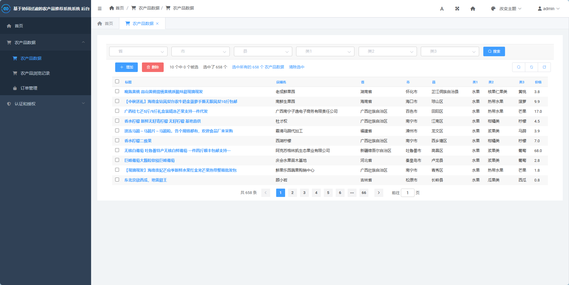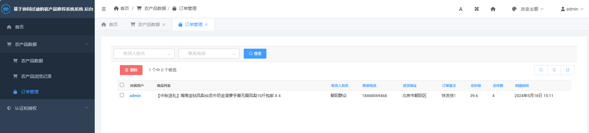 管理员可在后台管理各类农产品数据