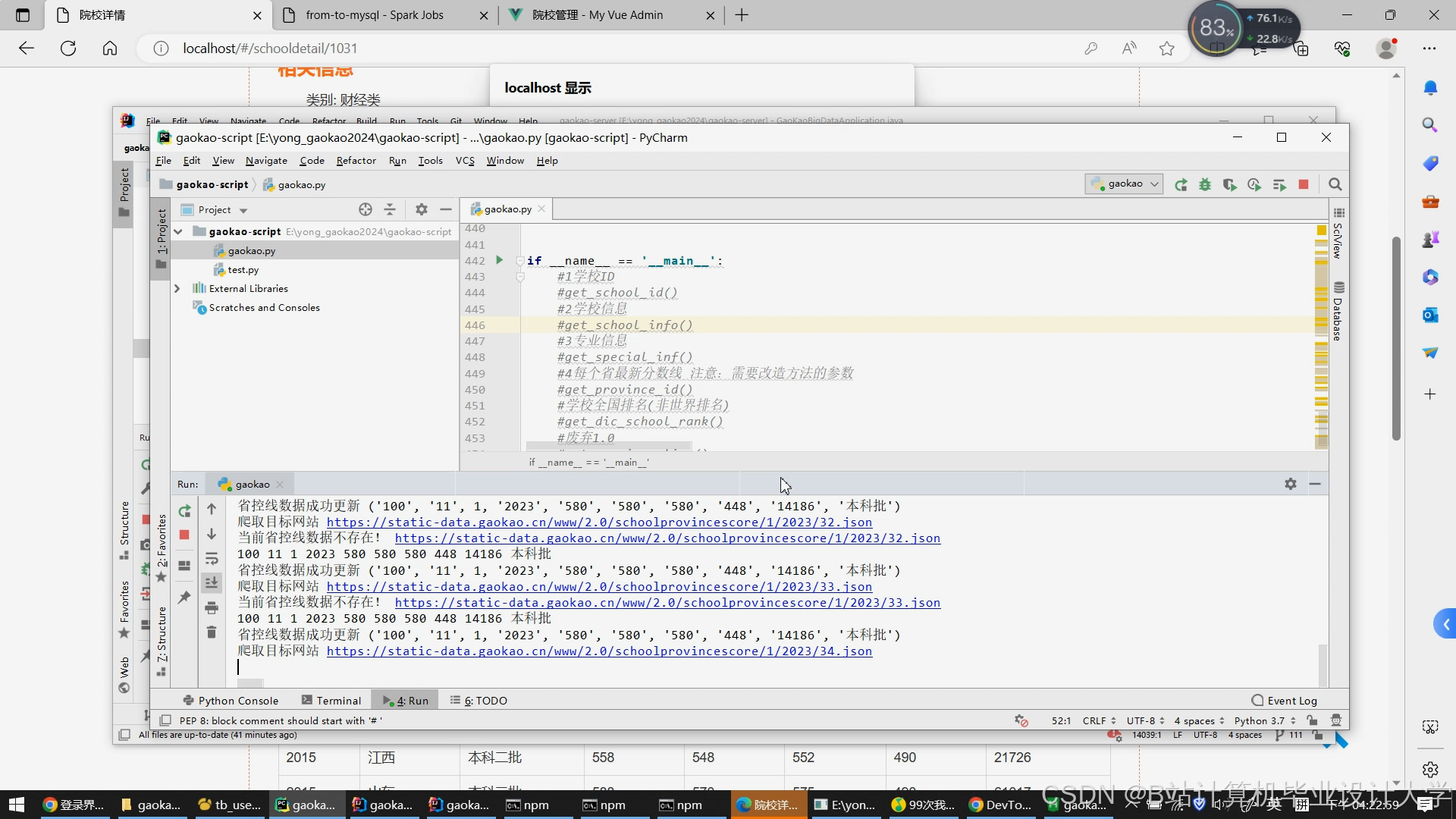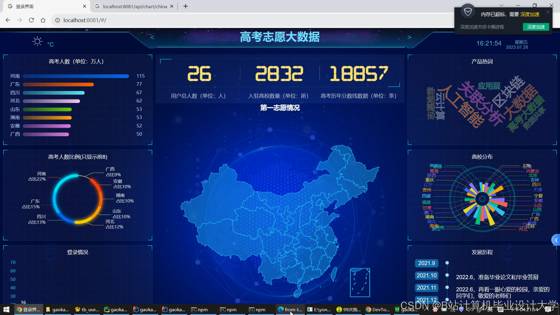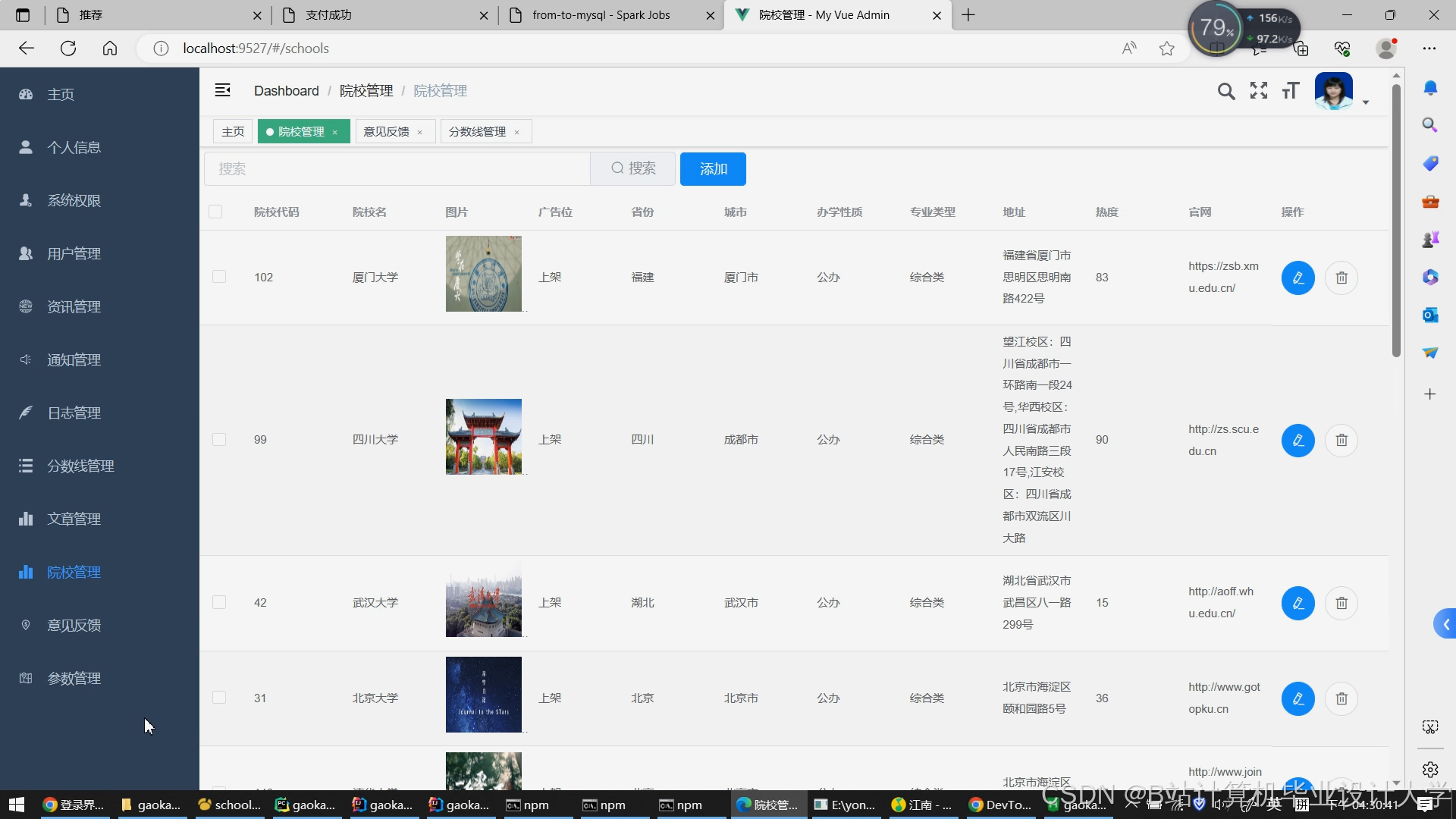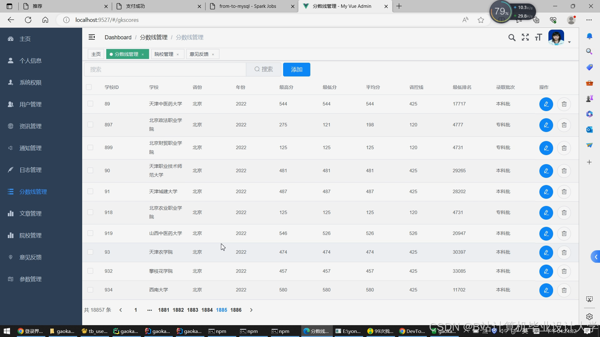 Hadoop+Spark数据大屏 + 后台高校、分数线数据增删改查