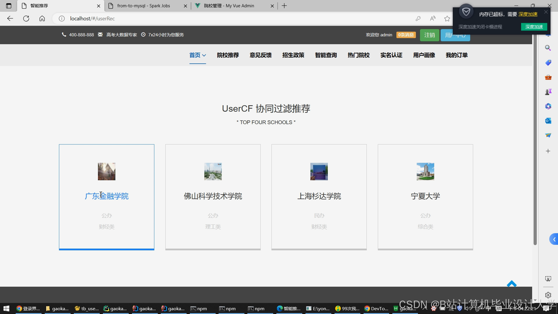 1. 利用协同过滤推荐算法实现高校推荐(UserCF+ItemCF双推荐算法)、CNN预测高考分数线