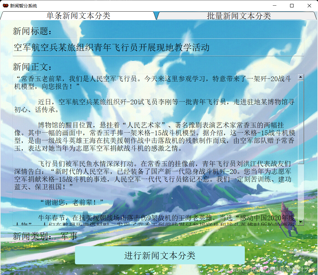 2021软件杯——新闻智分系统项目开源,基于PaddleHub通过预训练模型ERNIE-Tiny在整合与爬取的新闻10分类数据集上进行微调完成模型训练,可实现精细的新闻长文本10分类任务。最后基于PyQt5完成GUI可视化界面开发以及基于Vue+FastAPI完成该项目的web端部署。