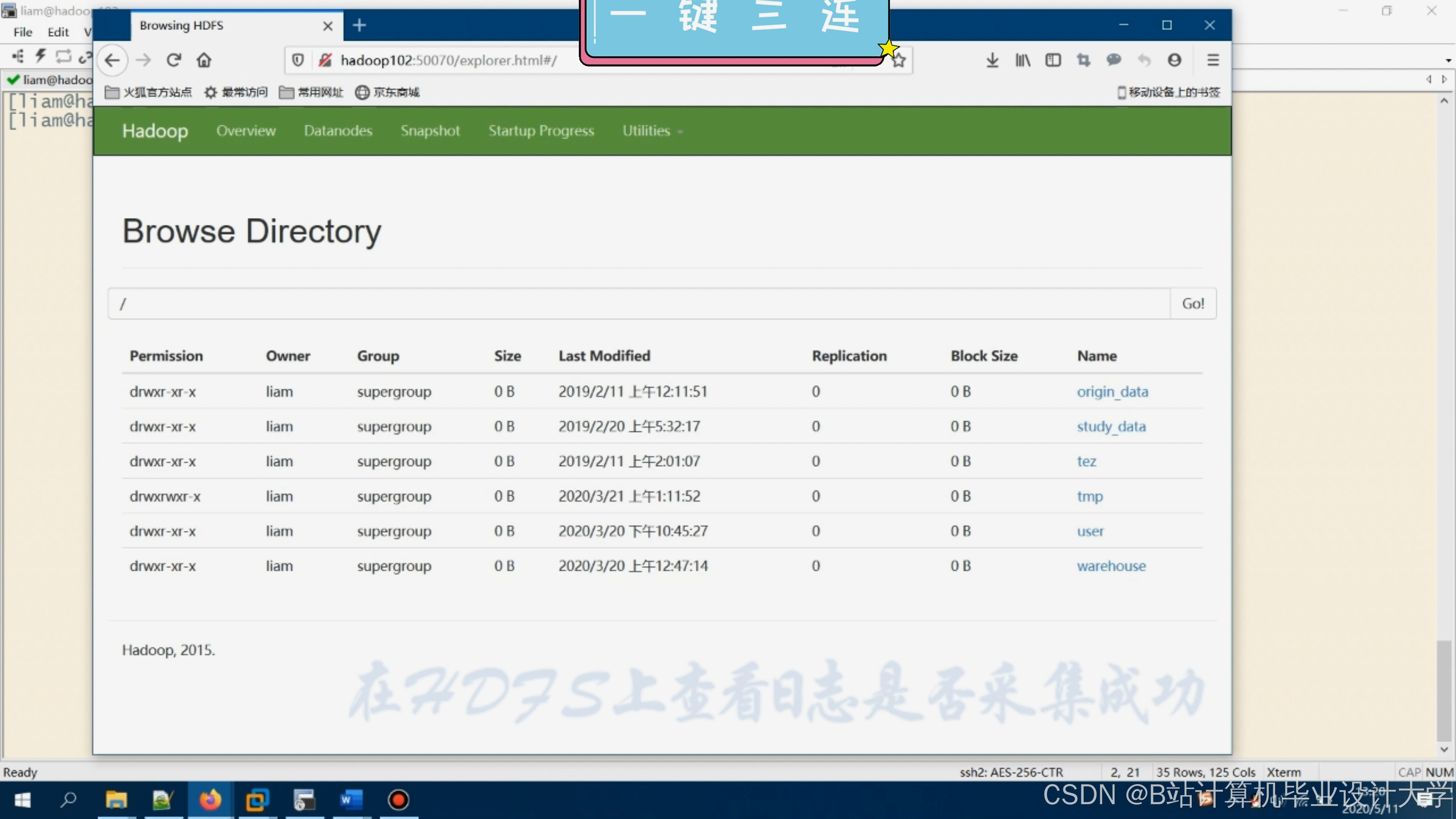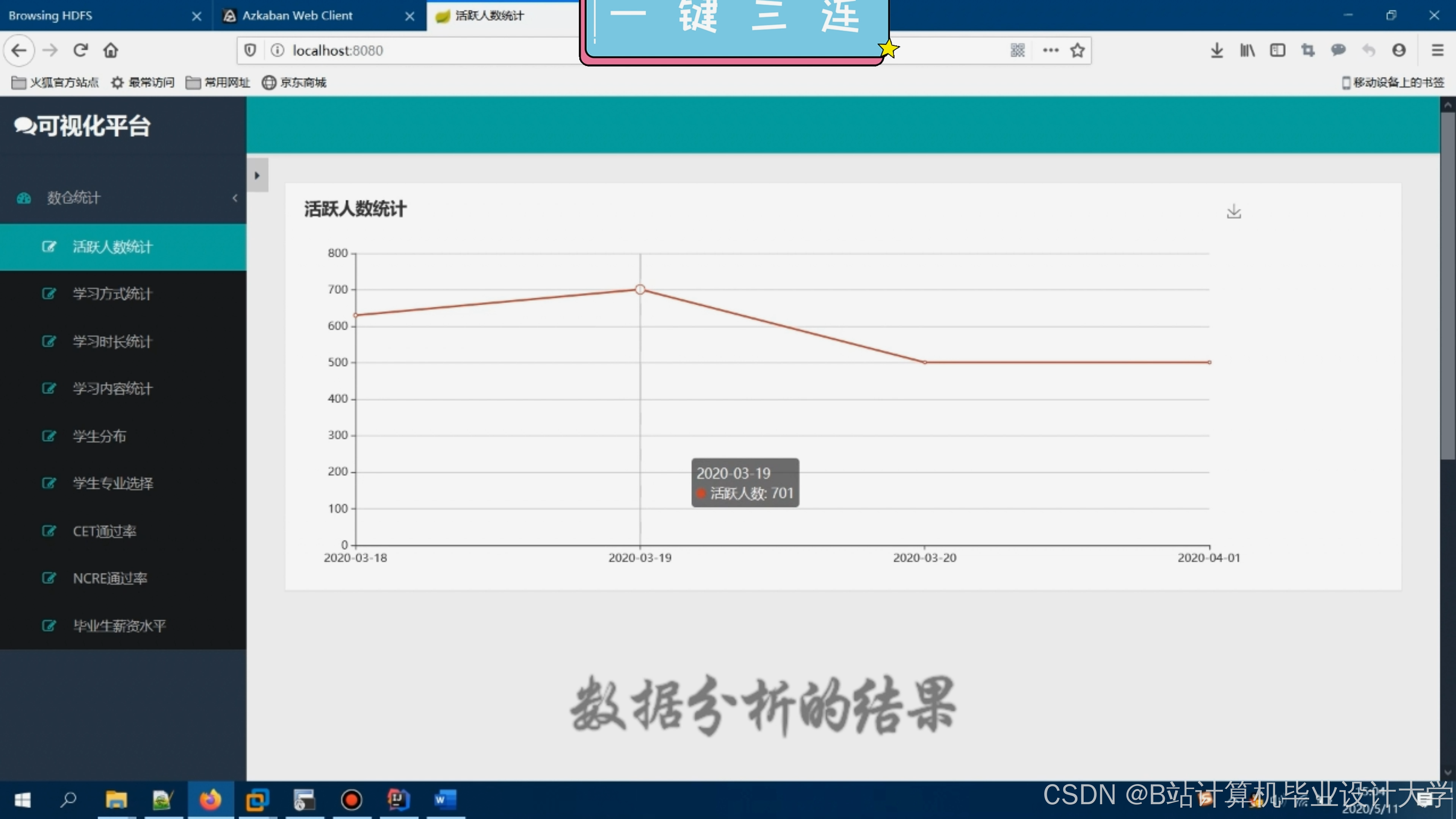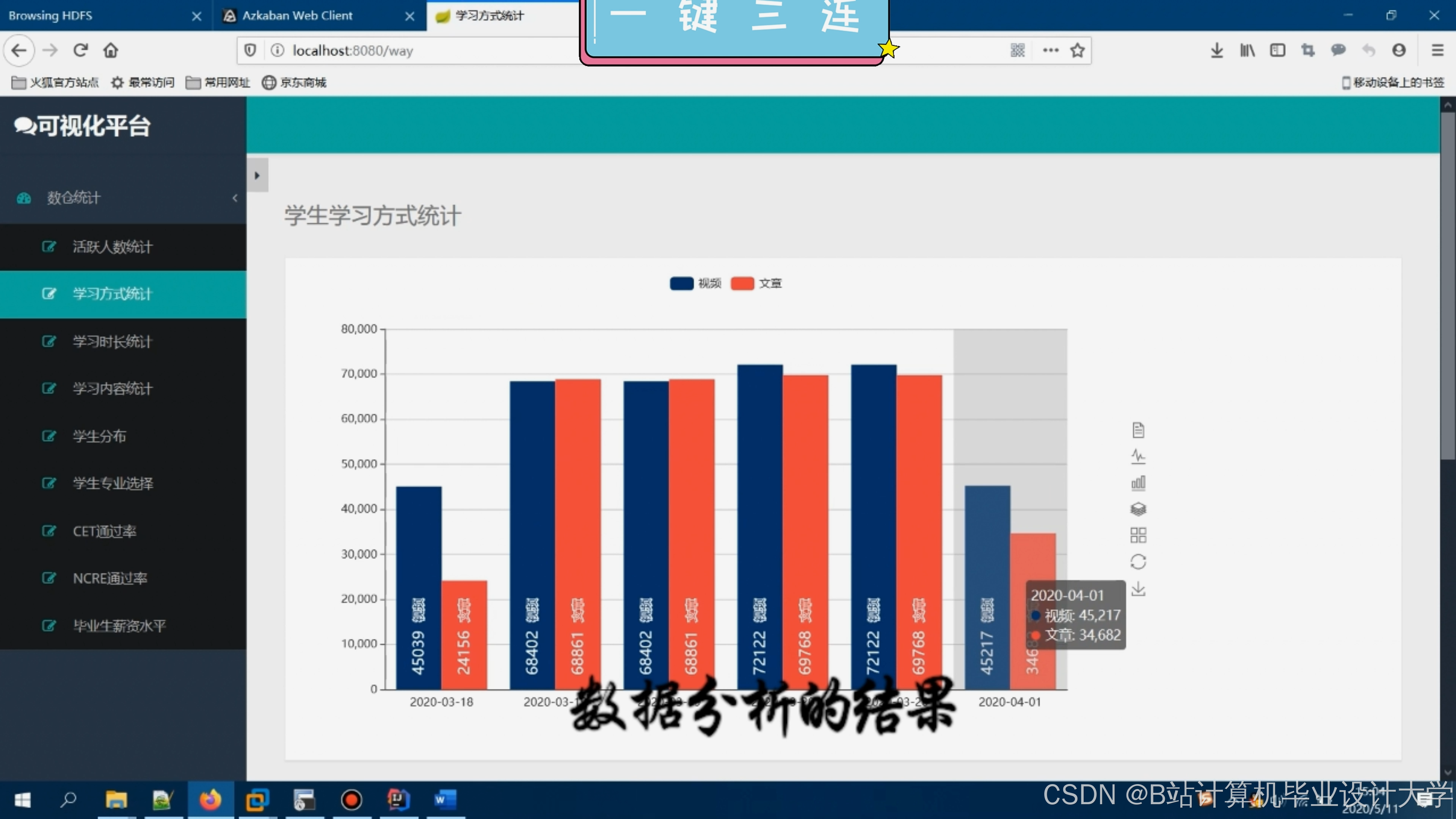 - 数据收集层:主要负责从各种数据源收集学生的学习数据,包括学生的在线学习记录、作业完成情况、考试成绩等。这些数据可以通过各种API接口、日志文件等方式获取,并存储到Hadoop的HDFS文件系统中。