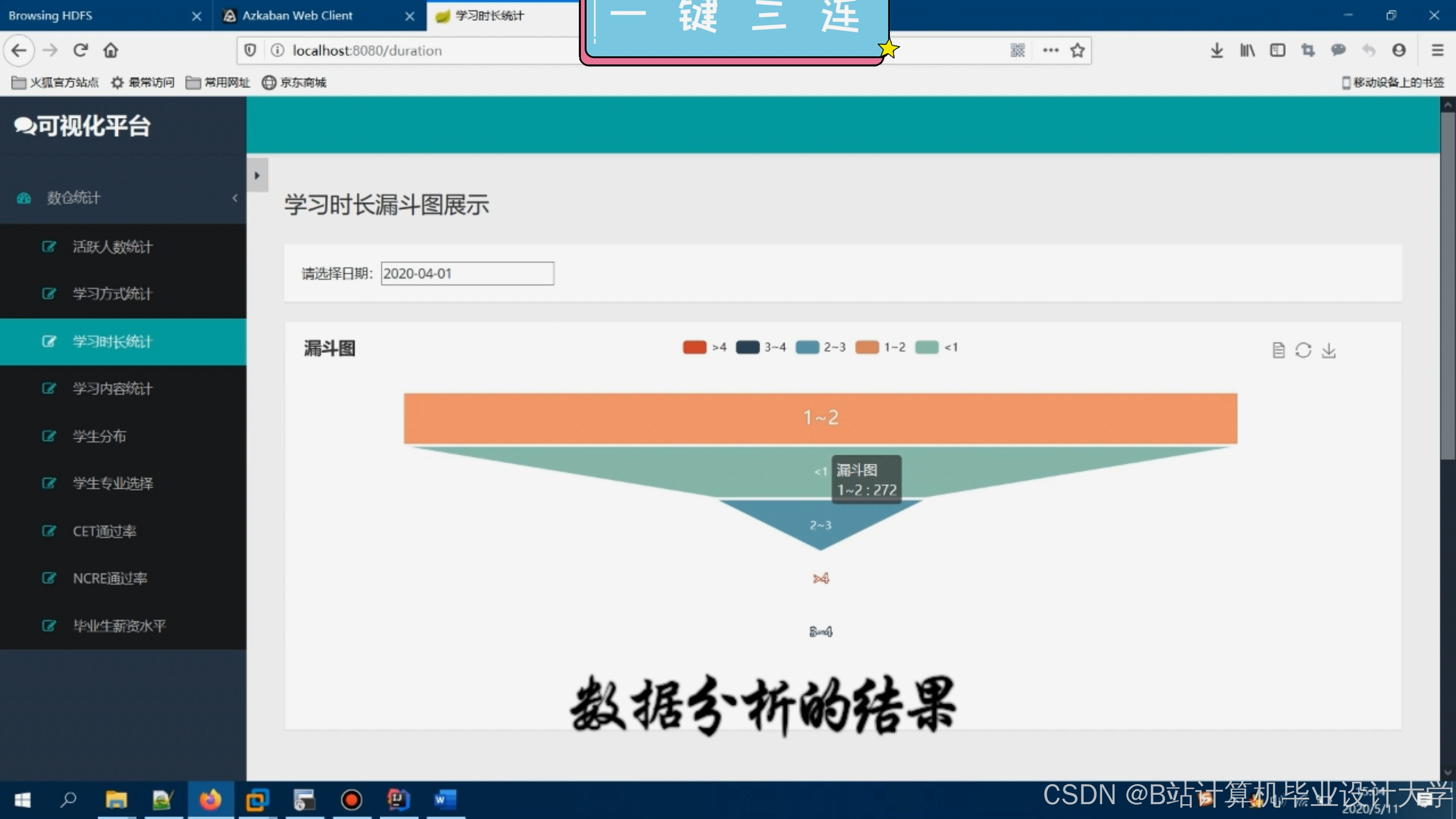 然而,在将收集的数据转化成有效增长的过程中,也面临一系列困境。例如,构建数据分析平台的门槛较高,大多数企业在数据处理方面的能力较弱,数据分散且采集整合困难等。因此,本研究采用Hadoop和Hive技术,构建学情分析系统,旨在解决这些问题。